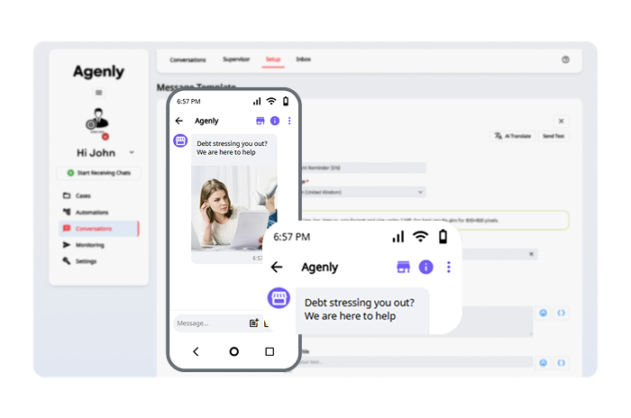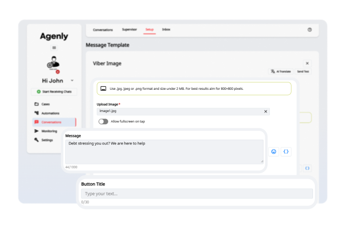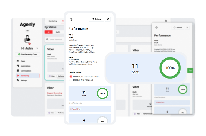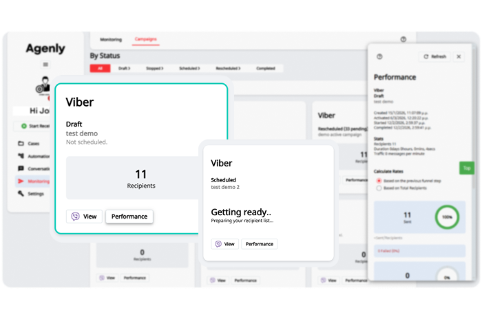 Digital outreach across SMS and Viber using configurable campaigns, personalised templates and conversational AI interactions.